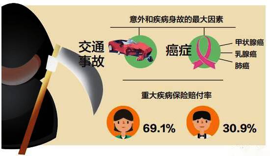 应该说,女性的寿命要比男性长,但寿命长并不意味着不生病。此次某知名保险公司对2016获赔过重大疾病保险的人群进行统计后发现,女性占比69.1%,是男性的两倍多。