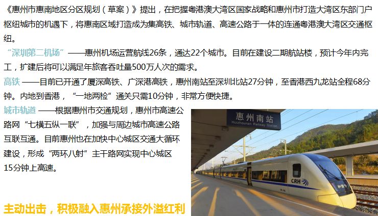 作为中心区域,全面对接深圳东进,承接广州东扩发展态势。不只是深圳,连香港、广州都看上了惠州。